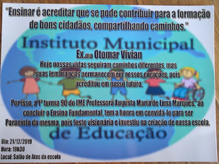 A formatura está marcada para o dia 21 de dezembro, as 19h30, no salão de atos da escola. Vivian ficou emocionado no momento do convite e disse que para um político receber este reconhecimento é muito importante, principalmente quando se trata de investimentos na educação e uma iniciativa que acabou dando certo, que foi a compra do prédio do Instituto, onde rende ao município anualmente pelo Fundeb mais de R$ 4 milhões.