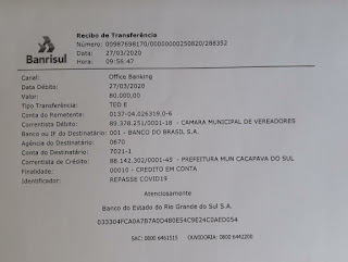 Com isso, no início da manhã desta sexta-feira, antes da reunião com a Secretária de Saúde, o setor de contabilidade das Câmara fez o depósito do dinheiro na conta da Saúde, no qual foi confirmado pelos técnicos da pasta no final da manhã. O Presidente também entregou a Secretária a cópia do recibo de pagamento do valor.