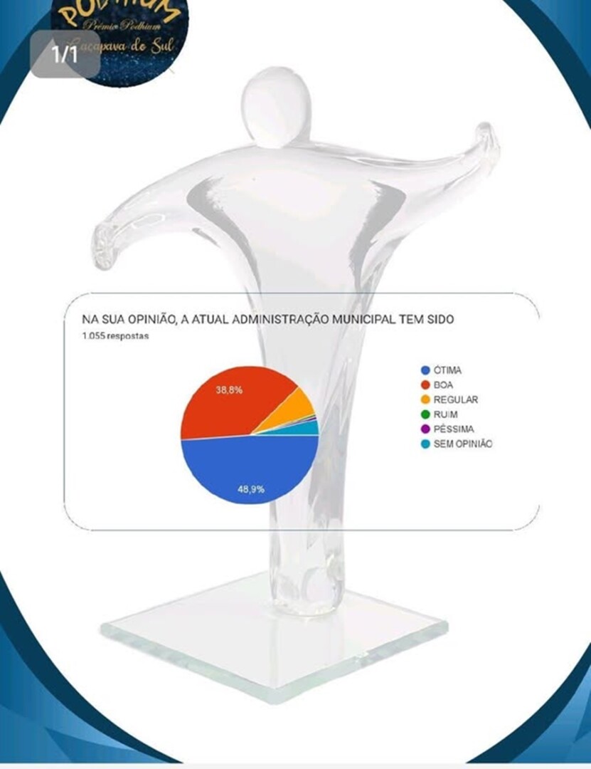A administração municipal recebeu na terça-feira, dia 08 de abril, o resultado da pesquisa Podium, que realizou uma avaliação do atual momento da prefeitura de Caçapava do Sul. A votação foi pela internet, com a participação de 1055 pessoas.