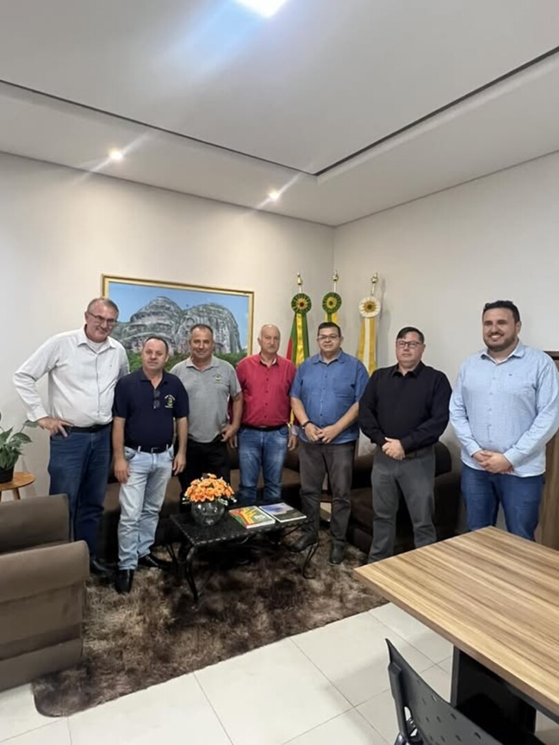Na terça-feira, 1º de abril, o prefeito Marcelo Spode, acompanhado do secretário de Gestão, Dilvane Loreto Jaime, do diretor da Câmara de Vereadores, Daniel Miranda, e dos vereadores Zilmar Araújo, Ricardo Rosso e Caio Oliveira, recebeu a visita do prefeito de Sapucaia do Sul, Volmir Rodrigues.