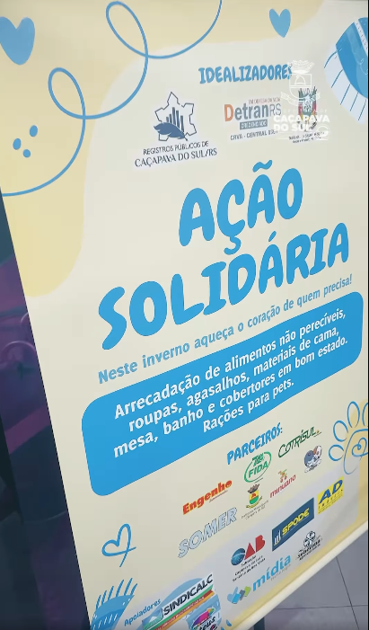 Em uma iniciativa conjunta, o Cartório de Registros Públicos, o Tabelionato de Notas e Protesto de Títulos de Caçapava do Sul e o Centro de Registros de Veículos Automotores (CRVA) estão promovendo uma Ação Solidária em benefício da população em situação de vulnerabilidade social. A campanha também estende o olhar para a causa animal, contando com a participação da Associação Anjos de Patas, que será responsável pela destinação correta das doações de ração para cães e gatos em situação de rua.