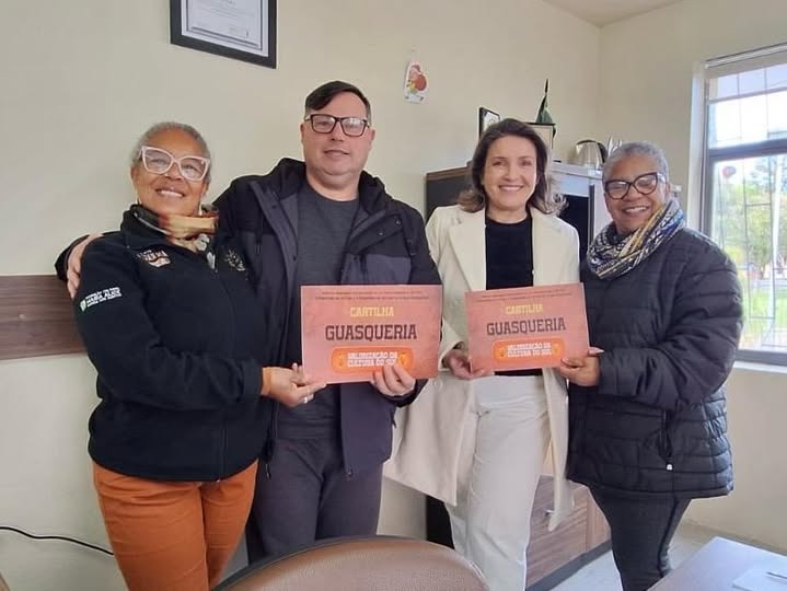 Na segunda-feira (25/08), o diretor da Câmara de Vereadores, Daniel Miranda e a servidora Marcia Helena Assunção receberam a coordenadora do Projeto Guasqueria, Maria Alice Garcia dos Santos, acompanhada da monitora Jeane Dorneles de Meireles.