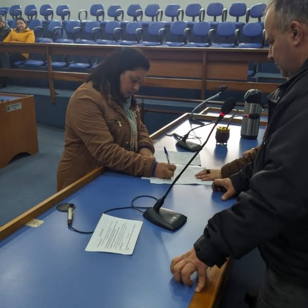 A vereadora tomou posse em ato conduzido pelo presidente Caio Oliveira (PP) e pela 1ª secretária Jussarete Vargas (PDT).