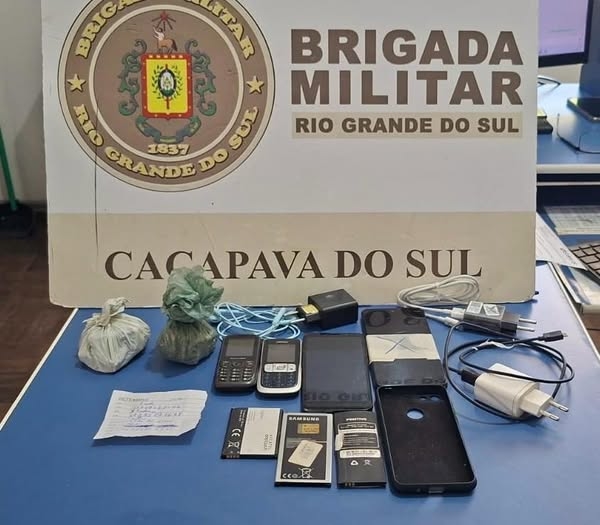 Na ação, foram apreendidos 89,40 gramas de maconha, aparelhos celulares, carregadores, fone de ouvido e capa de celular.