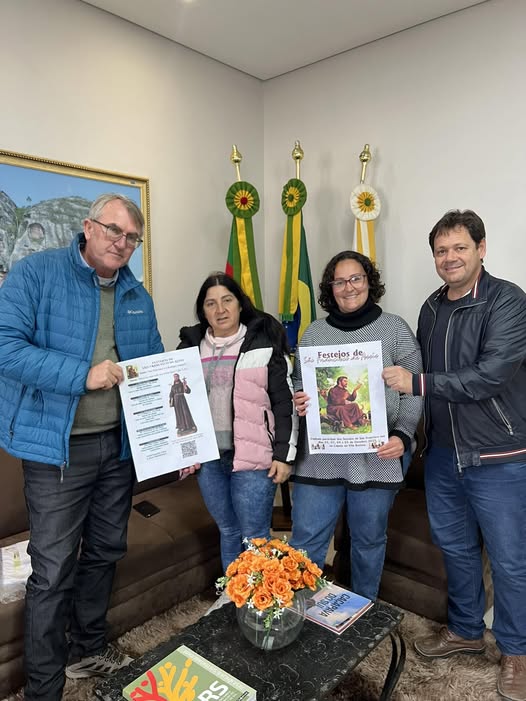Na manhã de quinta-feira, 4 de setembro, o prefeito Marcelo Spode e o vice-prefeito Mariano Teixeira receberam no gabinete, o convite para os Festejos de São Francisco de Assis. A entrega foi realizada pela presidente da Capela da Vila Batista, Judite Pofal, e pela integrante da comissão organizadora, Vitória Medeiros.