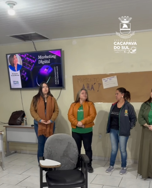Na noite de segunda-feira, 22 de setembro, foi dado início ao curso de Marketing Digital do programa Qualifica RS, na Escola Técnica Estadual Dr. Rubens da Rosa Guedes. Participaram da aula inaugural: as professoras Renata Miranda e Denize Oliveira e também o Secretário de Inovação, Cultura e Turismo Ignácio Lemos e sua adjunta Ana Marcia Marques, o Secretário de Gestão Dilvane Loreto Jaime e a coordenadora do Geoparque Caçapava Alizandra Silva.