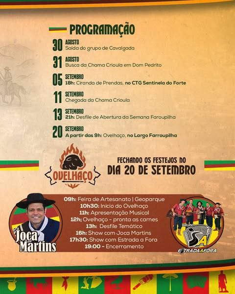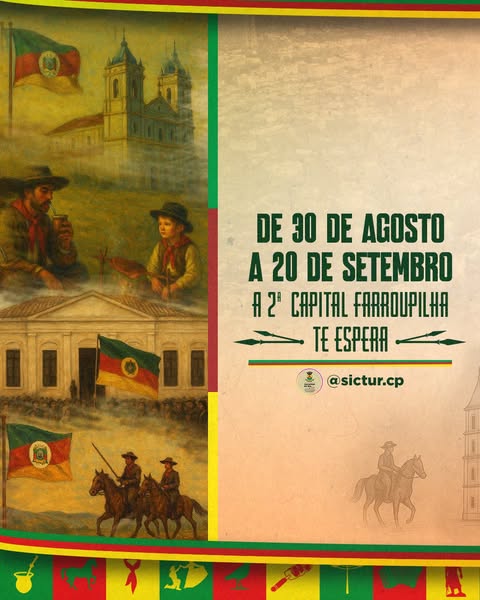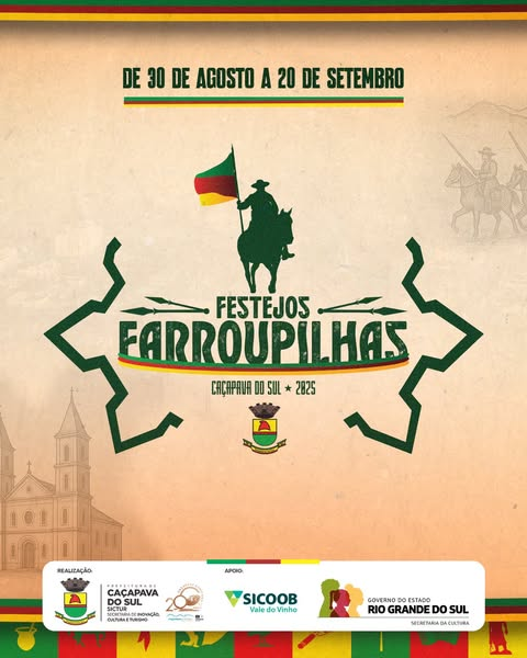 Vai começar a semana mais gaúcha do ano! Cultura Destaque Geral Prefeitura de Caçapava do Sul 1 de setembro de 20251 de setembro de 2025redacao CaçapavaLeave a Comment on Vai começar a semana mais gaúcha do ano! De 30 de agosto a 20 de setembro, Caçapava do Sul vive a cultura e a tradição! Compartilhe