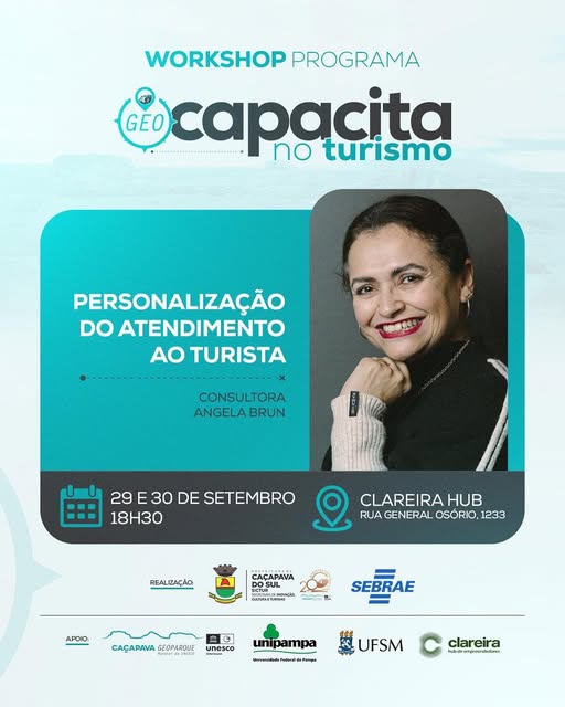 Nos dias 29 e 30 de setembro, às 18h30min, acontece no Clareira Hub o workshop “Personalização do Atendimento ao Turista”, promovido pelo Programa Geocapacita no Turismo. A atividade será conduzida pela consultora Ângela Brun e tem como objetivo orientar e instrumentalizar empreendedores que atuam com atividades turísticas, destacando a importância de oferecer um atendimento de excelência, com qualidade, encantamento e magia ao visitante.