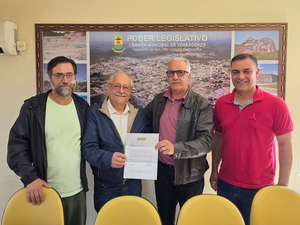 O Diretor Executivo do Sindicalc, Roberto Zamberlan, realizou uma visita institucional à Câmara de Vereadores, onde foi recebido pelo presidente da Casa, Celso Brito (MDB), e pelos vereadores Antonio Almeida Filho (Lelo-MDB), e Peter Linhares (PDT).