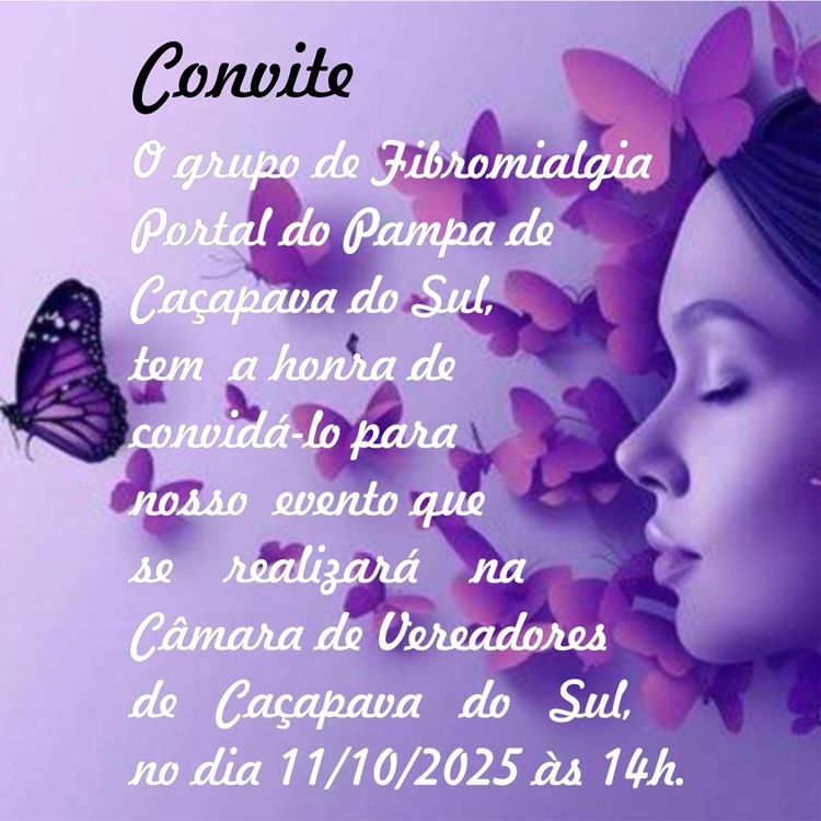 e outubro, às 14h, um evento especial de conscientização sobre a fibromialgia. A atividade será realizada na Câmara de Vereadores e contará com palestras, prestação de contas e encerramento com coquetel de confraternização.
