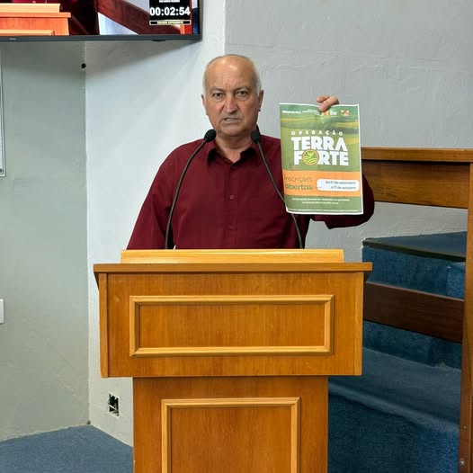 O líder do governo, vereador Ricardo Rosso (PP), falou durante a sessão de terça-feira (07/10) sobre o Projeto Terra Forte, iniciativa do Governo do Estado voltada ao fortalecimento da agricultura familiar no Rio Grande do Sul.
