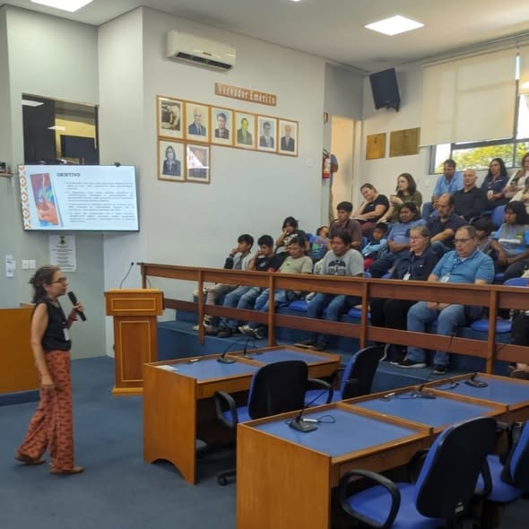 A Emater utilizou o plenário da Câmara de Vereadores para apresentar o diagnóstico das comunidades Guarani no Rio Grande do Sul, um estudo amplo realizado pelos extensionistas rurais sociais e agropecuários da instituição, em parceria direta com as famílias e lideranças indígenas.