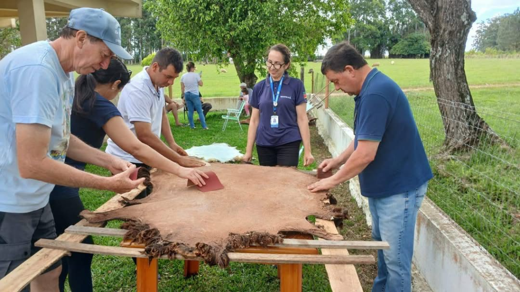 A Emater/RS-Ascar realizou mais uma oficina sobre curtimento artesanal de pele ovina, orientando produtores rurais sobre como garantir mais resistência, flexibilidade e durabilidade ao produto.