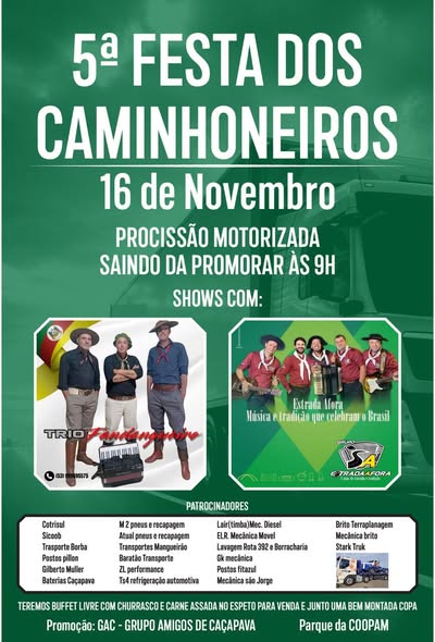 A Secretaria de Saúde estará presente na 5ª Festa dos Caminhoneiros, que acontece no próximo domingo, dia 16 de novembro, no Parque da Coopam, em Caçapava do Sul.