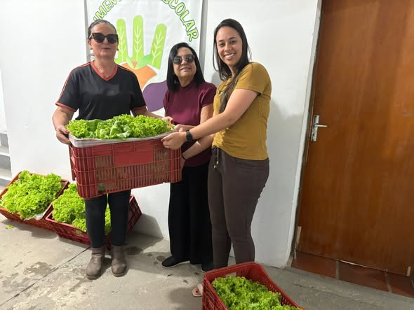 Após a colheita, as alfaces foram encaminhadas para as unidades escolares, garantindo alimentação segura, nutritiva e de qualidade para os estudantes.