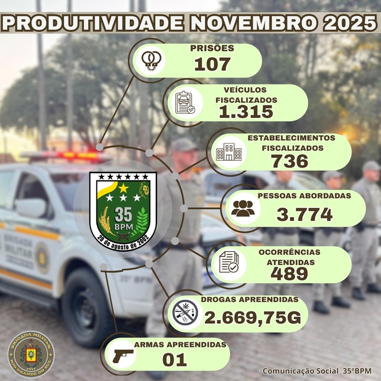 Abrangendo os municípios de Cachoeira do Sul, Novo Cabrais, Cerro Branco, Paraíso do Sul, Caçapava do Sul e Santana da Boa Vista. Os resultados reafirmam o papel essencial desempenhado pela Brigada Militar na promoção de um ambiente seguro, destacando o compromisso permanente da Instituição em proteger e servir a sociedade de Cachoeira do Sul e região.