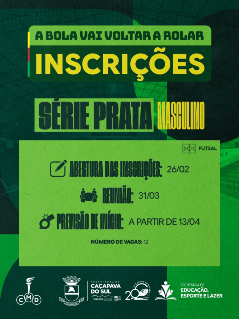 O Futsal Série Prata contará com 12 vagas, a Copa Feminina com 6 equipes e o Futebol de Campo com 16 vagas. As reuniões com os responsáveis pelas equipes ocorrem nos dias 30 e 31 de março, conforme a modalidade, e o início das competições está previsto para os dias 12 e 13 de abril.