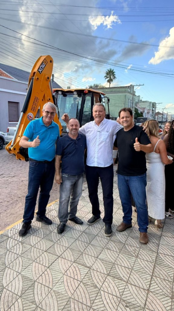 Na tarde da quarta-feira, dia 01, o deputado federal Afonso Hamm esteve em Caçapava do Sul para entregar uma retroescavadeira zero km ao município. A máquina foi comprada pela secretaria de agropecuária usando uma emenda do deputado do ano de 2025.
