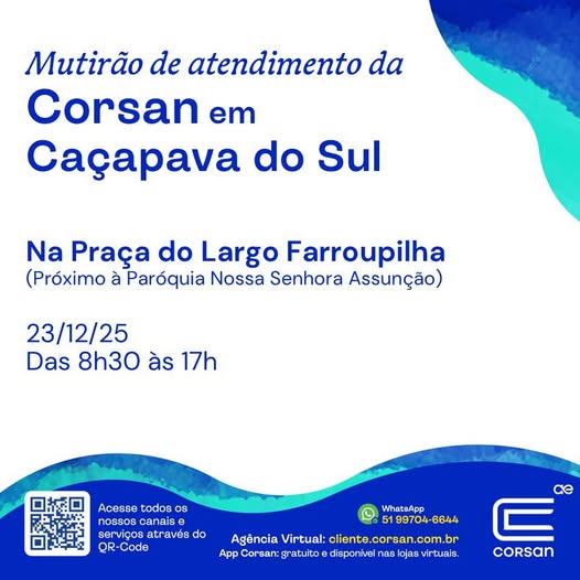 Unidade móvel da Corsan estará nas duas cidades para atendimento ao público A Corsan realizará mutirões de atendimento ao consumidor com a unidade móvel em Caçapava do Sul e Santana da Boa Vista. Em Caçapava do Sul, a ação ocorrerá no dia 23 de dezembro, das 8h30min às 17h, na Praça do Largo Farroupilha (próximo […]