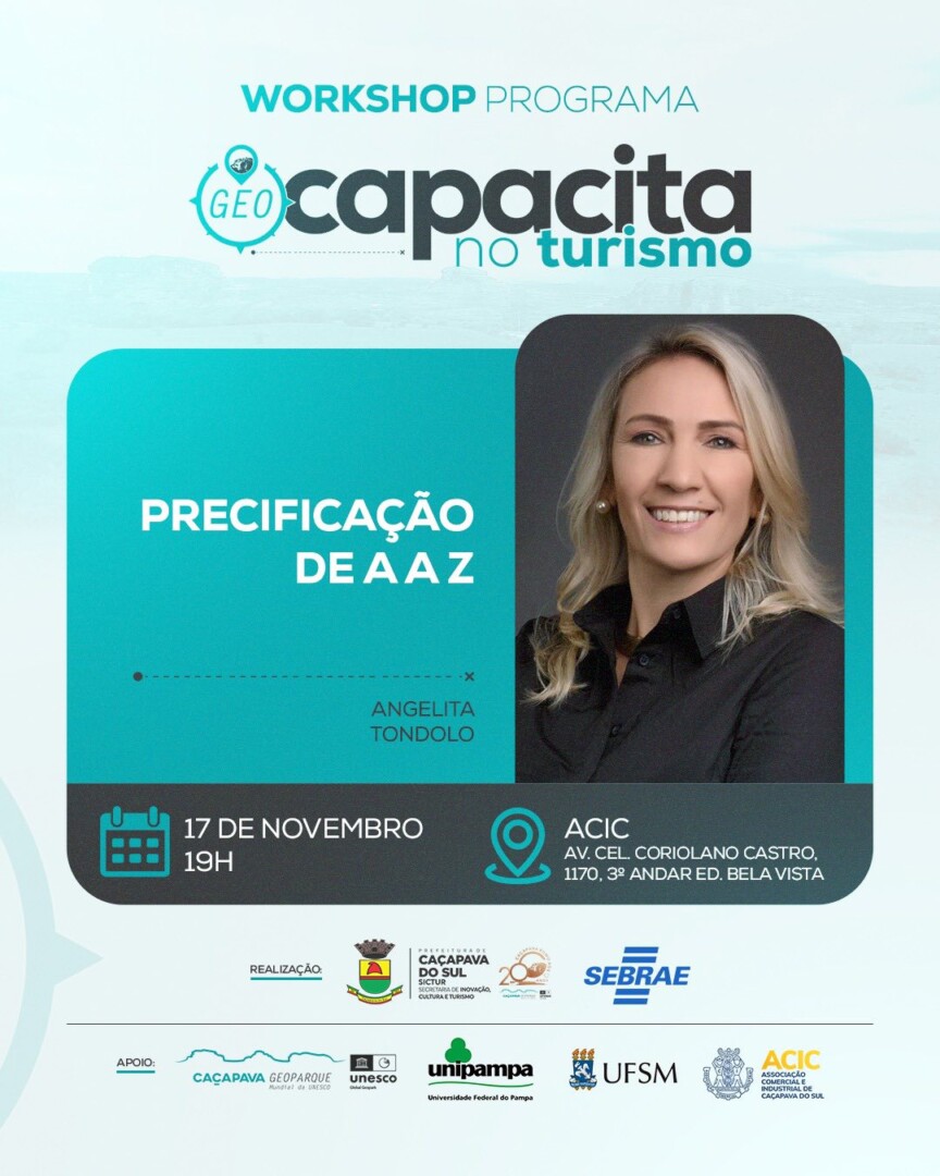 A Secretaria de Inovação, Cultura e Turismo – SICTUR, em parceria com o Sebrae, promove mais uma rodada do Programa Geocapacita no Turismo, com dois workshops voltados ao aperfeiçoamento da gestão e fortalecimento dos empreendimentos do setor turístico. No dia 17 de novembro, às 19h, na ACIC, ocorre o workshop “Precificação de A a Z”, […]
